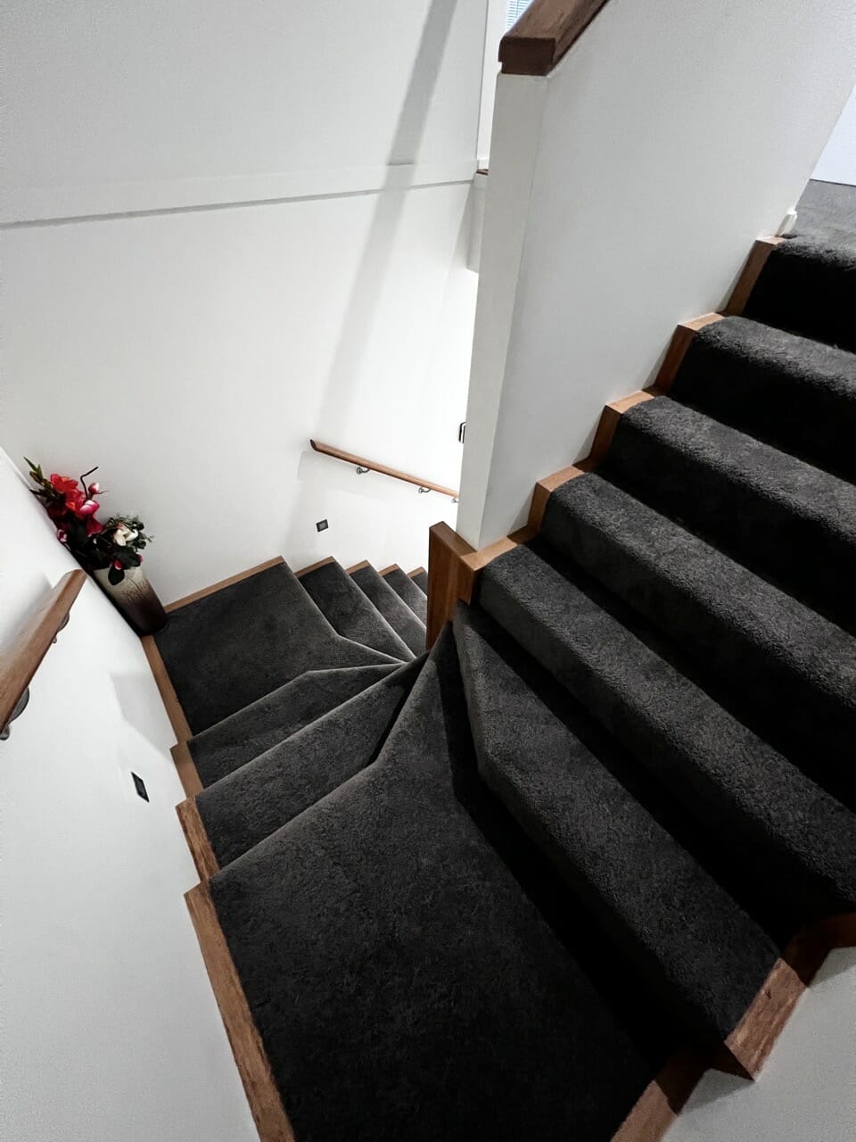 Grey loop pile carpet on stairs available now from Beare Flooring.