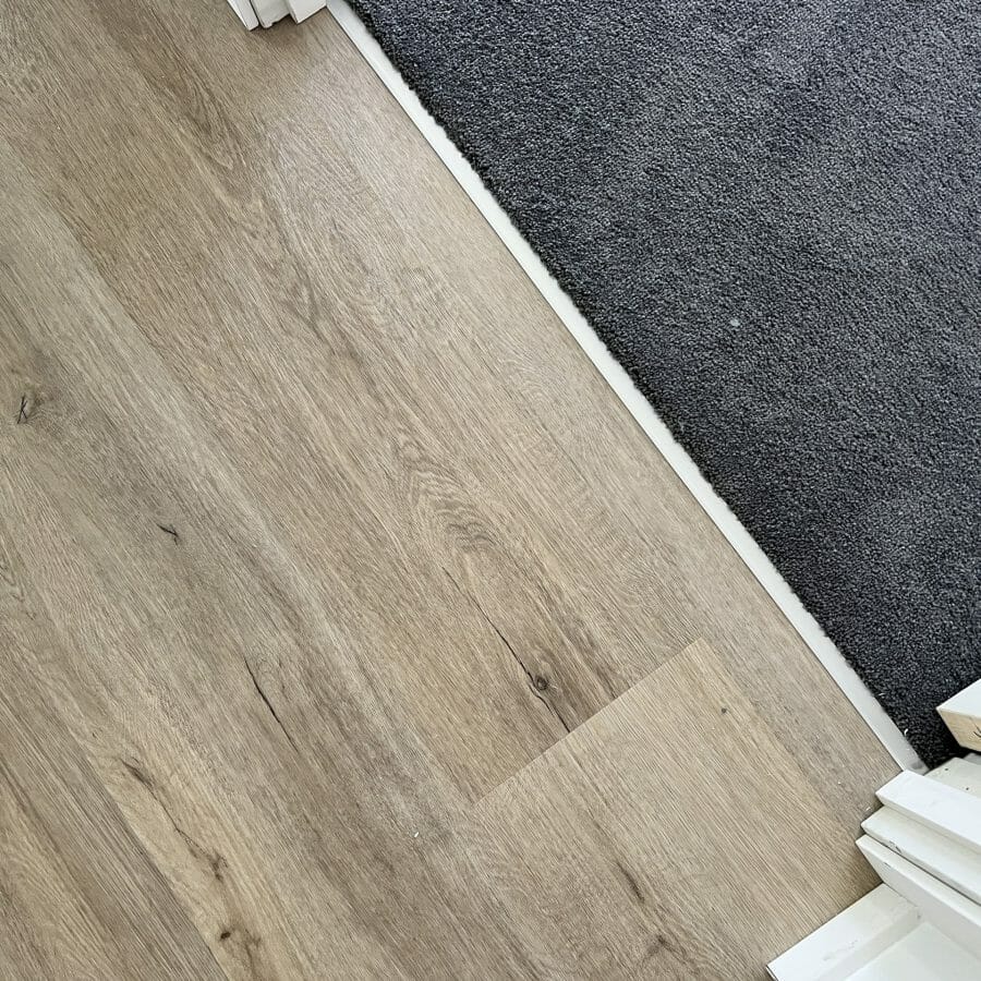 Jason selected “Aqua Stone V7” in Oak Byron for the main thoroughfare in his home and we can understand why – This beautiful colour Oak Byron is suited to most homes and the range Aqua Stone V7 is our best seller in hard flooring. An extremely well designed product that is priced right and has all the specs to hold up for a lifetime of wear and tear. The product is also locally stocked and easy to install meaning that Christmas deadline was looking more and more promising!